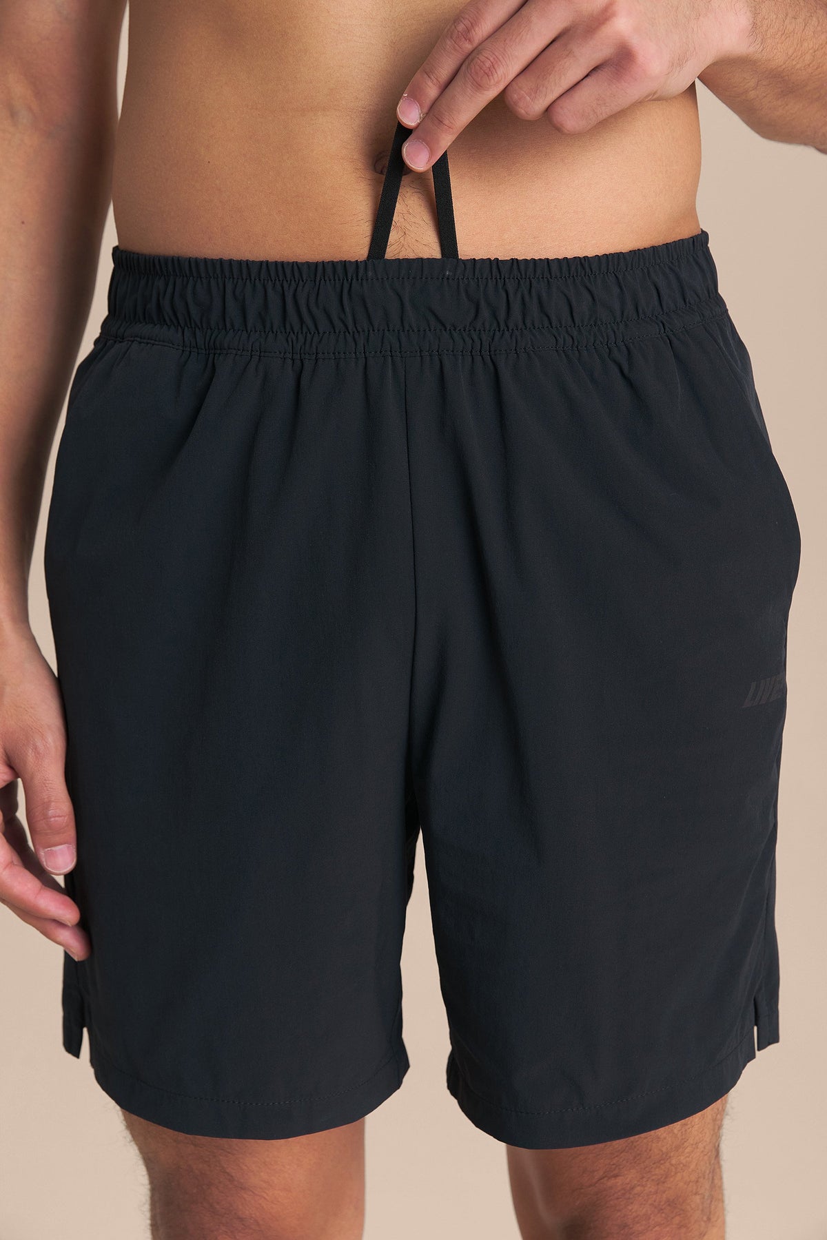 These Shorts feature a 7'' length and an adjustable inner elastic waistband, ensuring a personalized and comfortable fit. They include two functional side pockets, a back zip pocket, and a key pocket in the inner liner, providing practical storage for essential items with security. The anatomical inner-leg panel enhances fit and promotes freedom of movement, while small side slits add lightness and improve mobility. Made from a woven fabric with excellent stretch and Easy Care and Quick Dry technologies, they simplify daily maintenance and help keep the body dry and comfortable during use. The exclusive LIVE! Signature adds authenticity to the design.