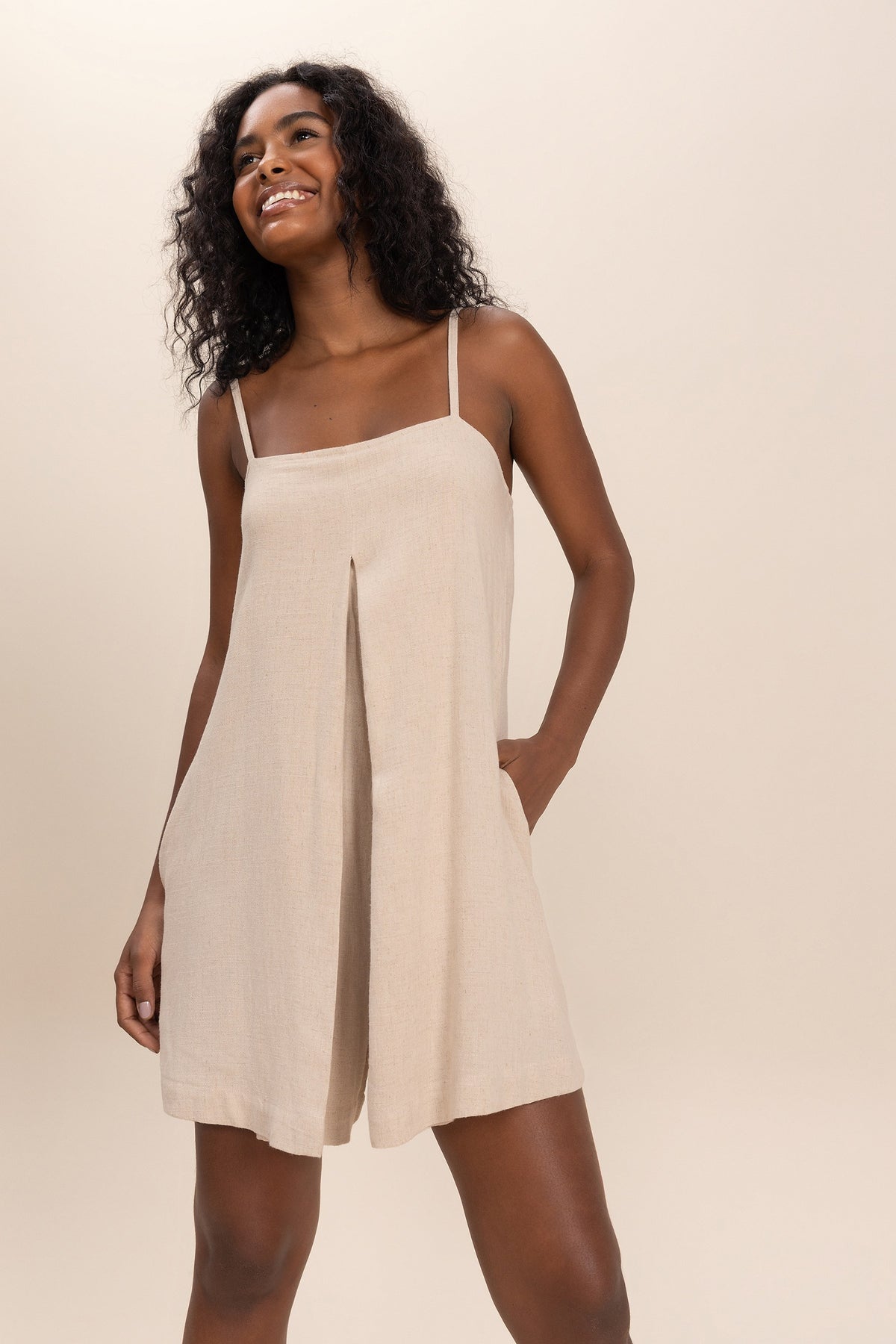 The front pleat detail adds charm and sophistication, giving the piece movement as you walk. It also has functional side pockets for small personal items, making your routine easier.