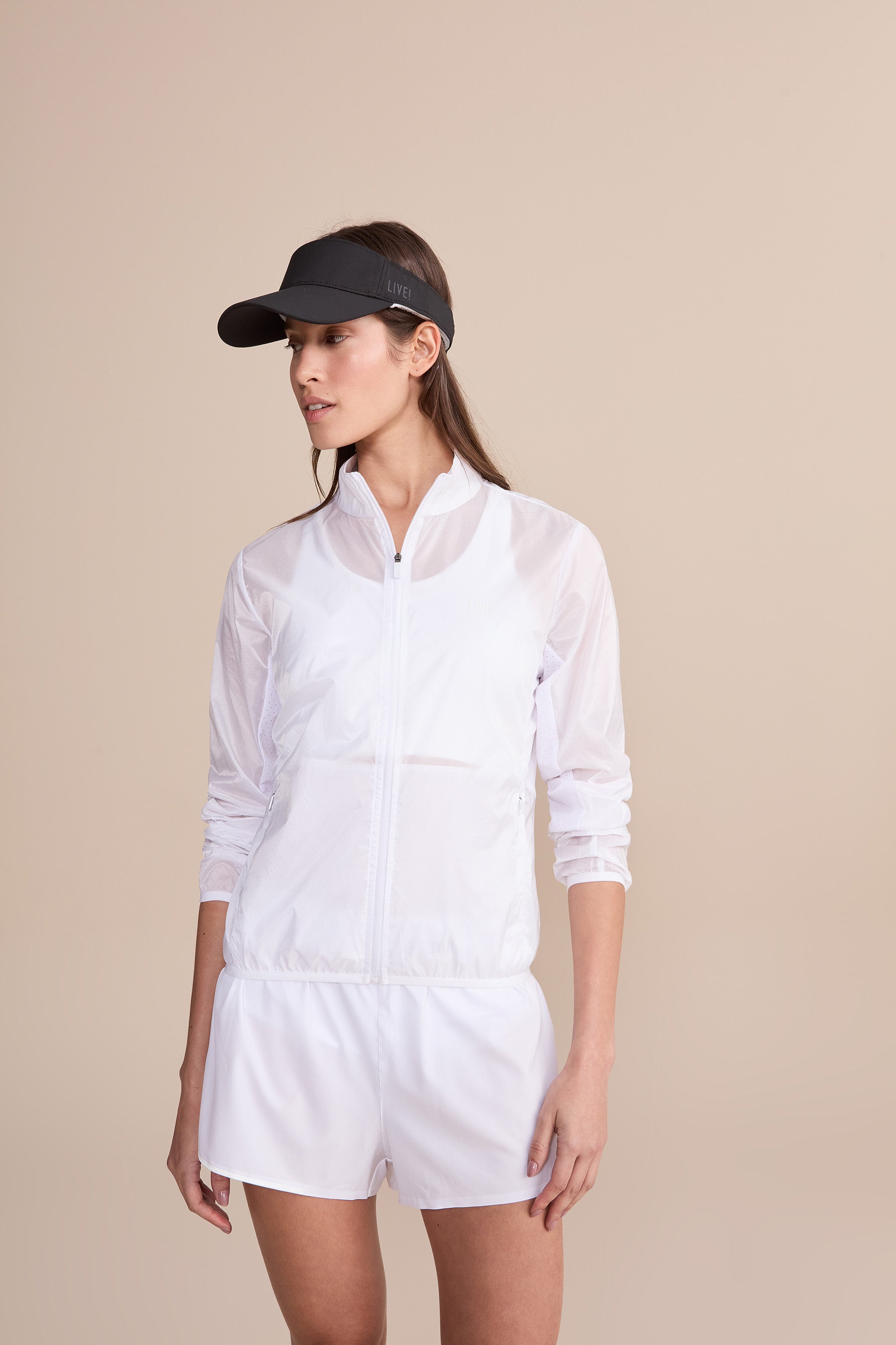The Wispy Windbreaker Jacket features high-performance technology design that supports athletic performance! Its high collar design with front zipper closure and strategic fabric mix cutouts provides comfort and freedom of movement. The reflective piping detail on the back ensures increased safety in low-light environments and/or during nighttime activities. The functional zippered pockets in the front offer security for small personal items, making your routine easier. The Signature LIVE! on the chest adds an exclusive touch to the product. Made from lightweight, water-resistant fabric, it’s ideal for outdoor activities, offering protection in all weather conditions.